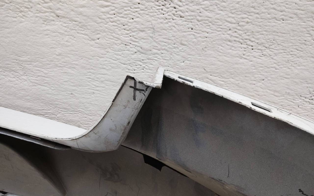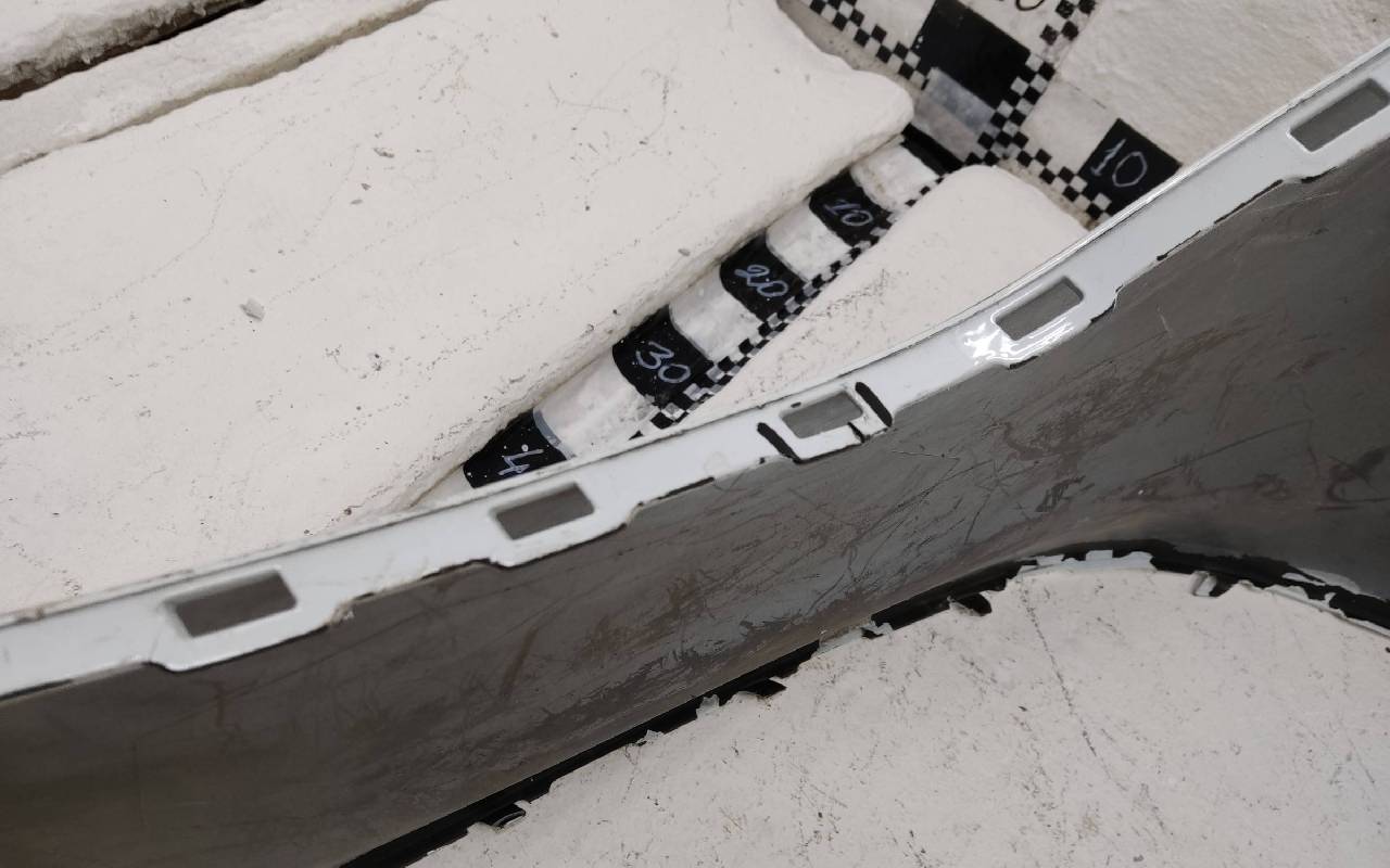 Под парктроники. Белого цвета. Дефект нескольких креплений. Вмятина на полке. Под ремонт