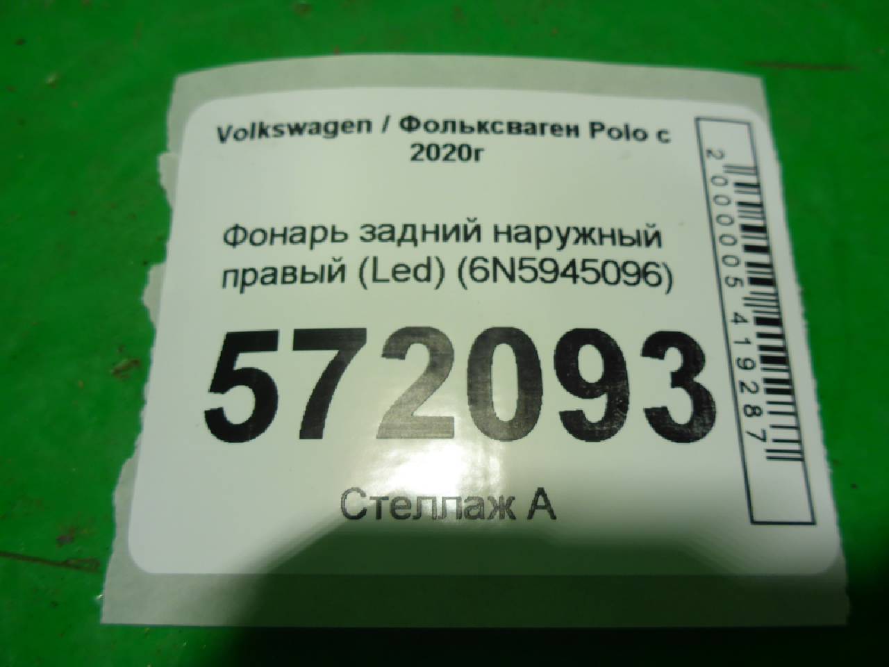 Купить Фонарь задний наружный правый (Led) (6N5945096) 6N5945096 для Volkswagen Polo 6 (Фольцваген Фольксфаген Поло 6) RR572093 ✓ с доставкой по Москве и России
