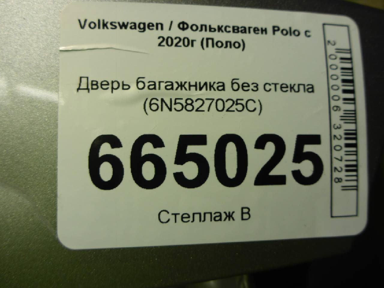 Деталь: Volkswagen Polo 6 - Крышка багажника без стекла (6N5827025C)