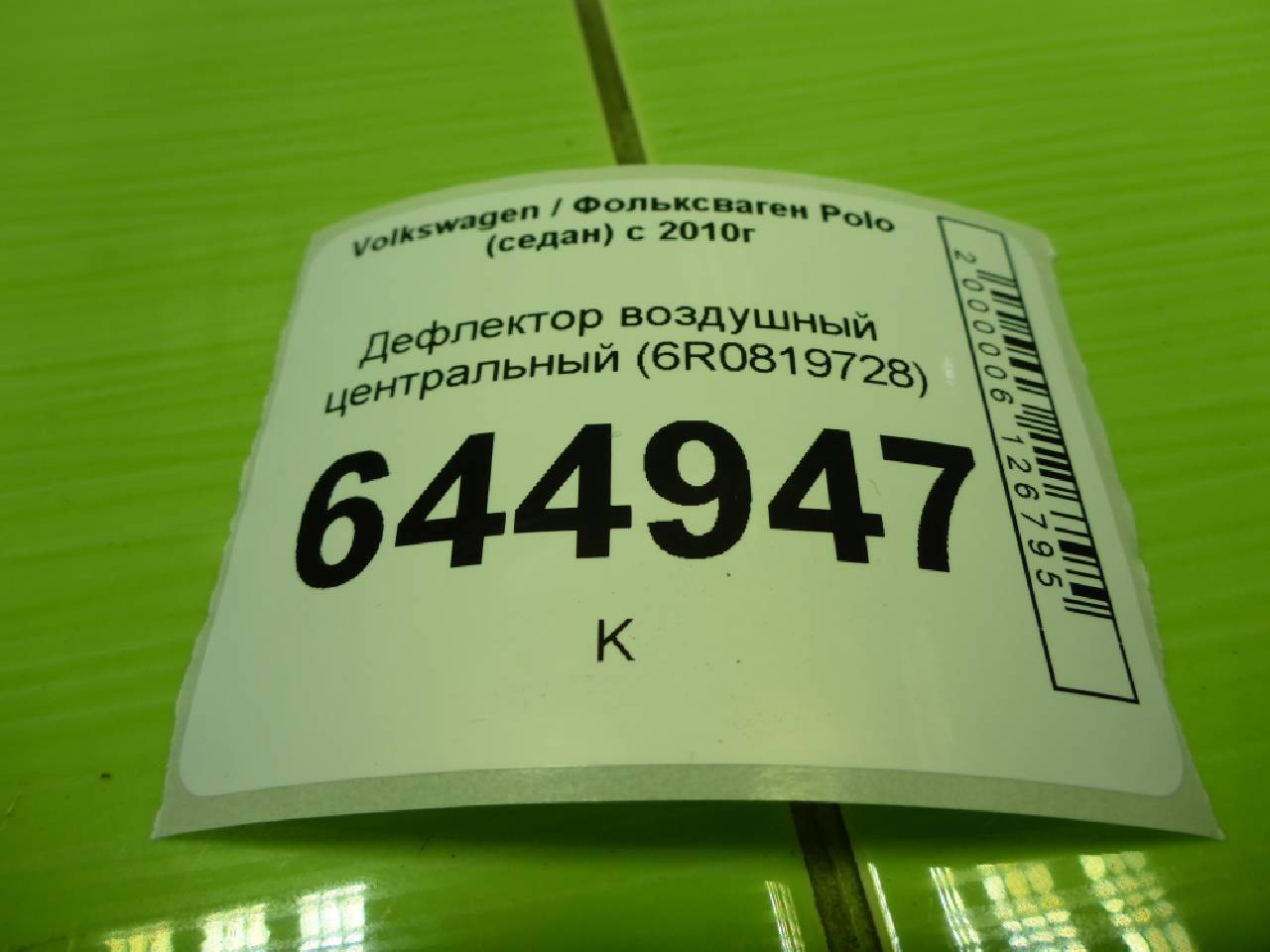 Деталь: Volkswagen Polo Sedan - Дефлектор воздушный центральный (6R0819728)
