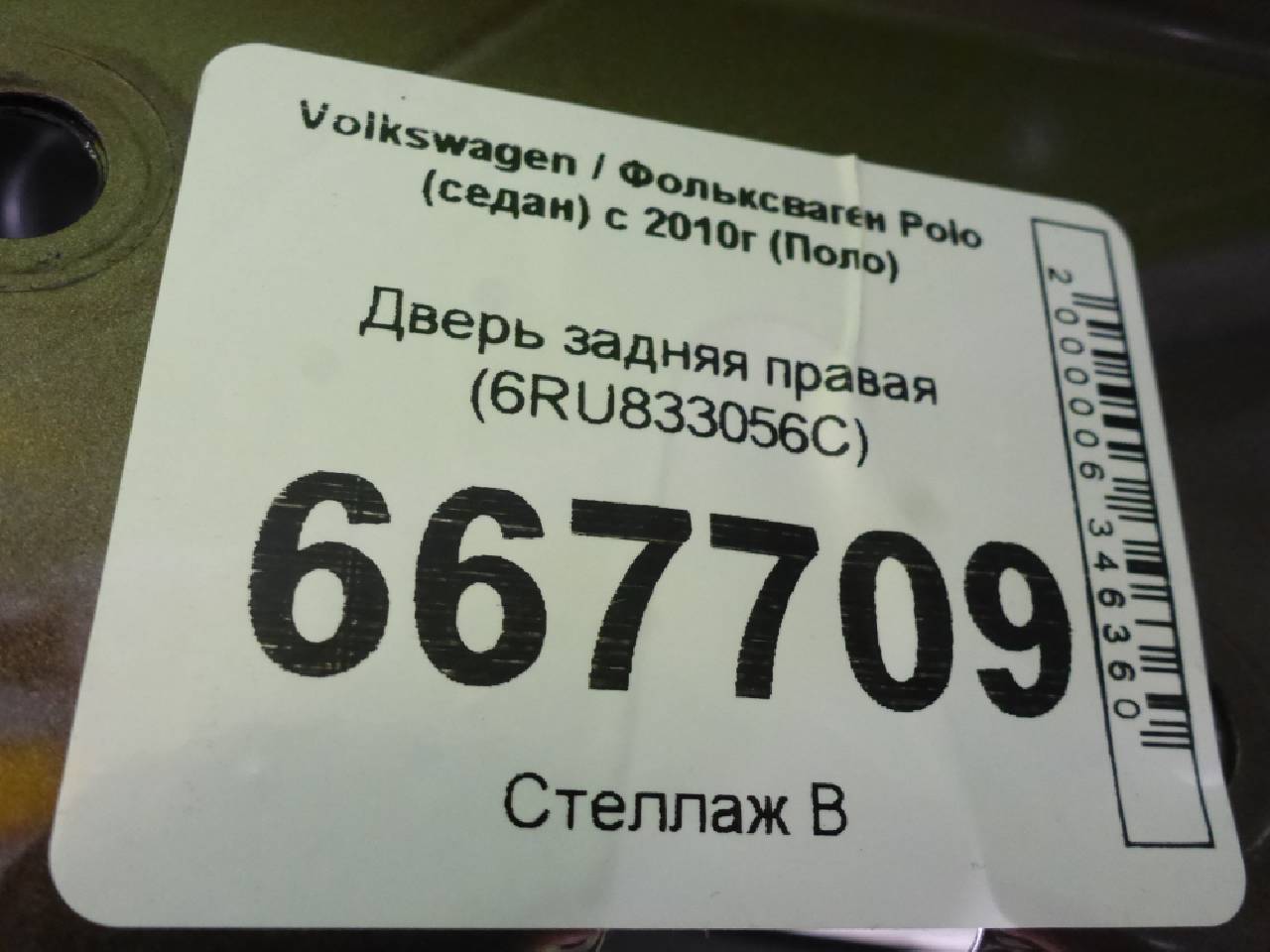 Деталь: Volkswagen Polo Sedan - Дверь задняя правая (6RU833056C)