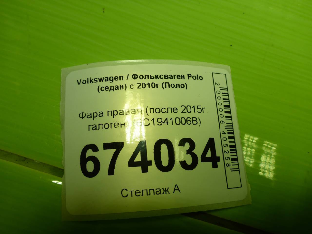 Деталь: Volkswagen Polo Sedan - Фара правая (после 2015г галоген) (6C1941006B)