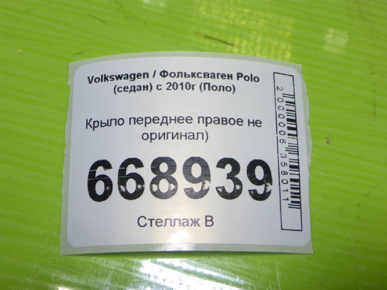 Деталь: Volkswagen Polo Sedan - Крыло переднее правое (не оригинал)