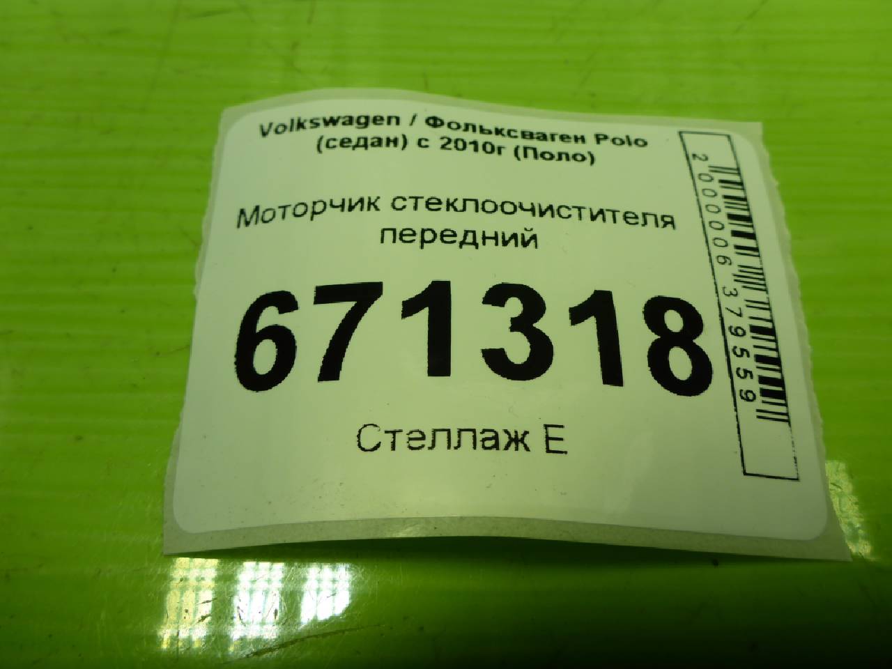Деталь: Volkswagen Polo Sedan - Моторчик стеклоочистителя передний (6R1955113A)