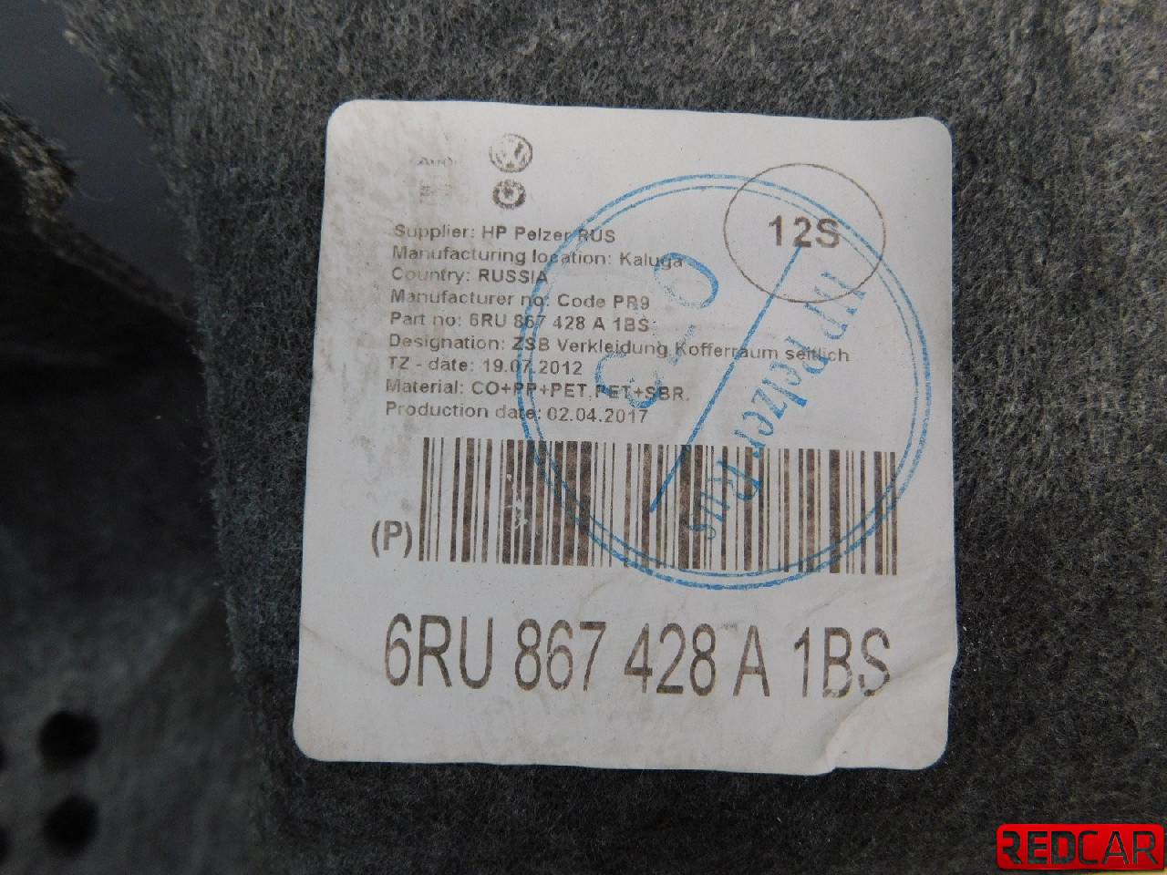 Купить Обшивка багажника 6RU867428A для Volkswagen Polo Sedan (Фольцваген Фольксфаген Поло Седан) 43168073 ✓ с доставкой по Москве и России
