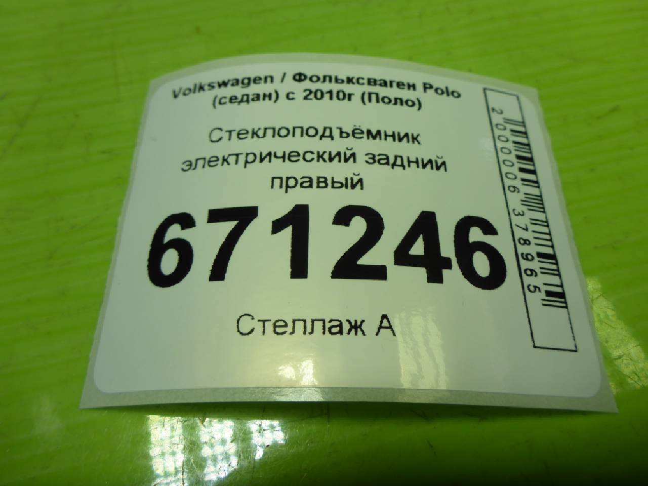 Деталь: Volkswagen Polo Sedan - Стеклоподъемник электрический задний правый (без моторчика) (6RU839462E)