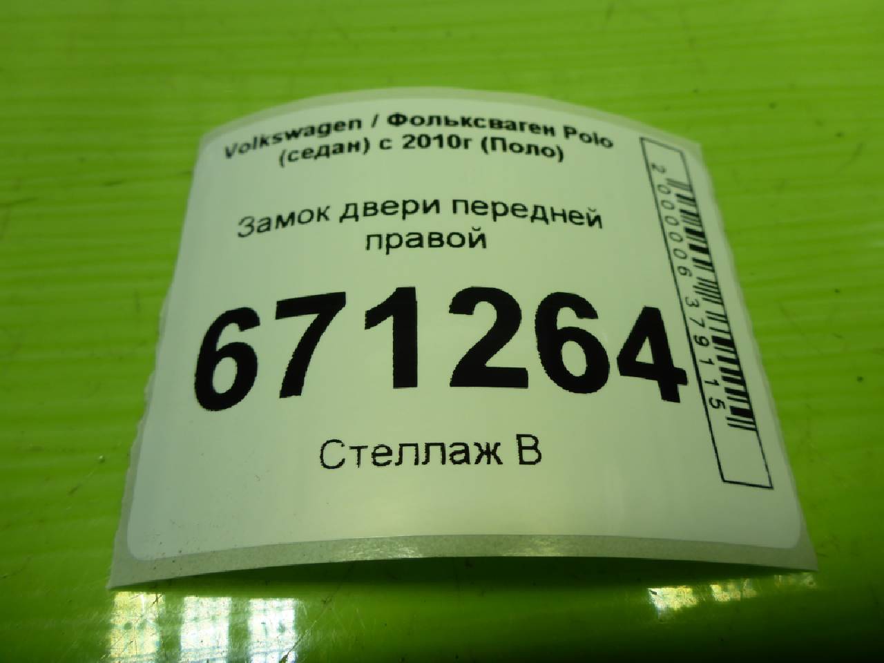 Деталь: Volkswagen Polo Sedan - Замок двери передней правой (6RD837016E)