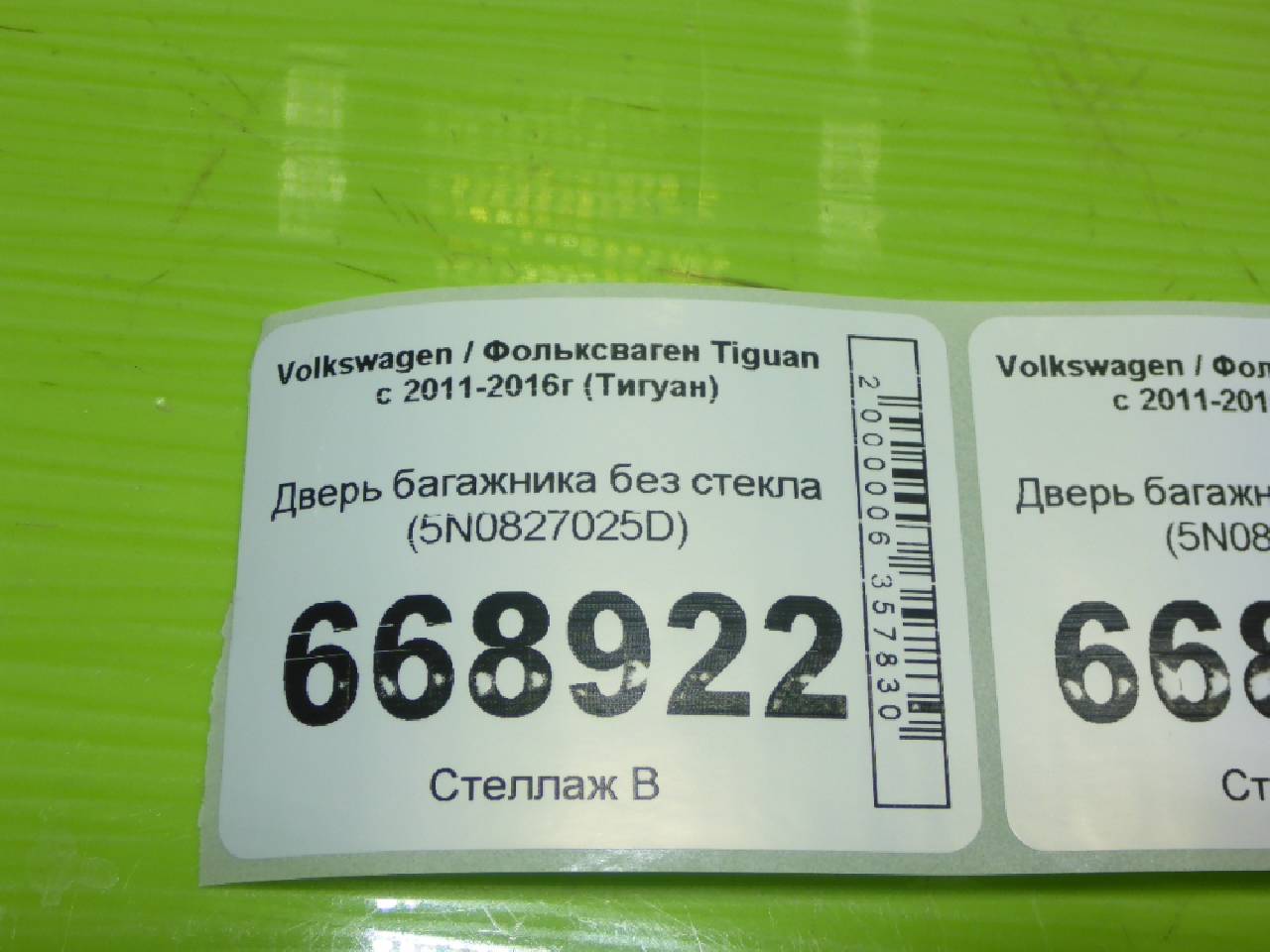Деталь: Volkswagen Tiguan - Крышка багажника без стекла (5N0827025D)