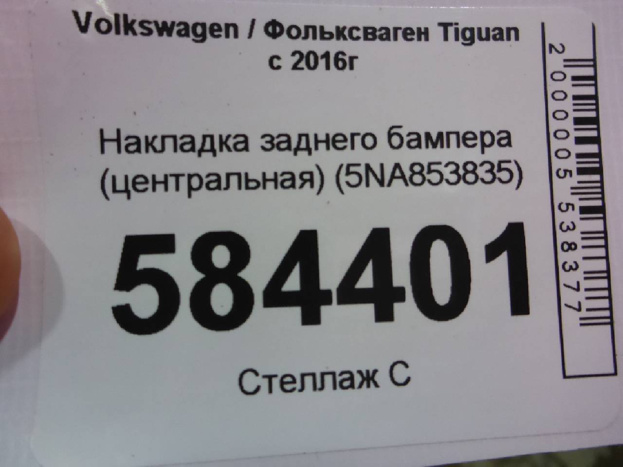 Деталь: Volkswagen Tiguan - Накладка заднего бампера (до 2020г центральная) (5NA853835)