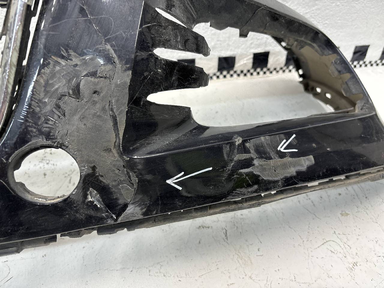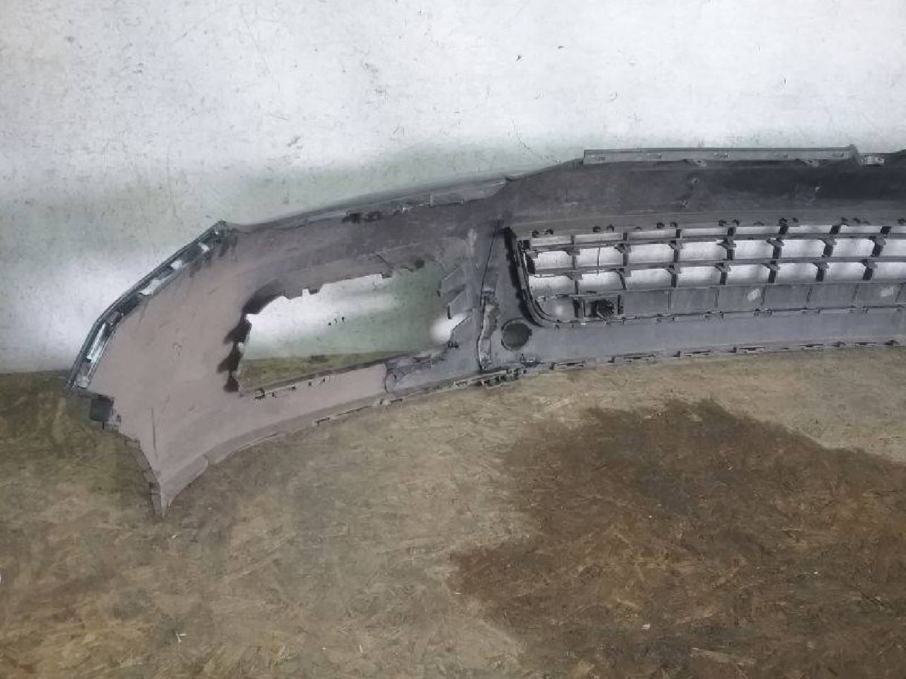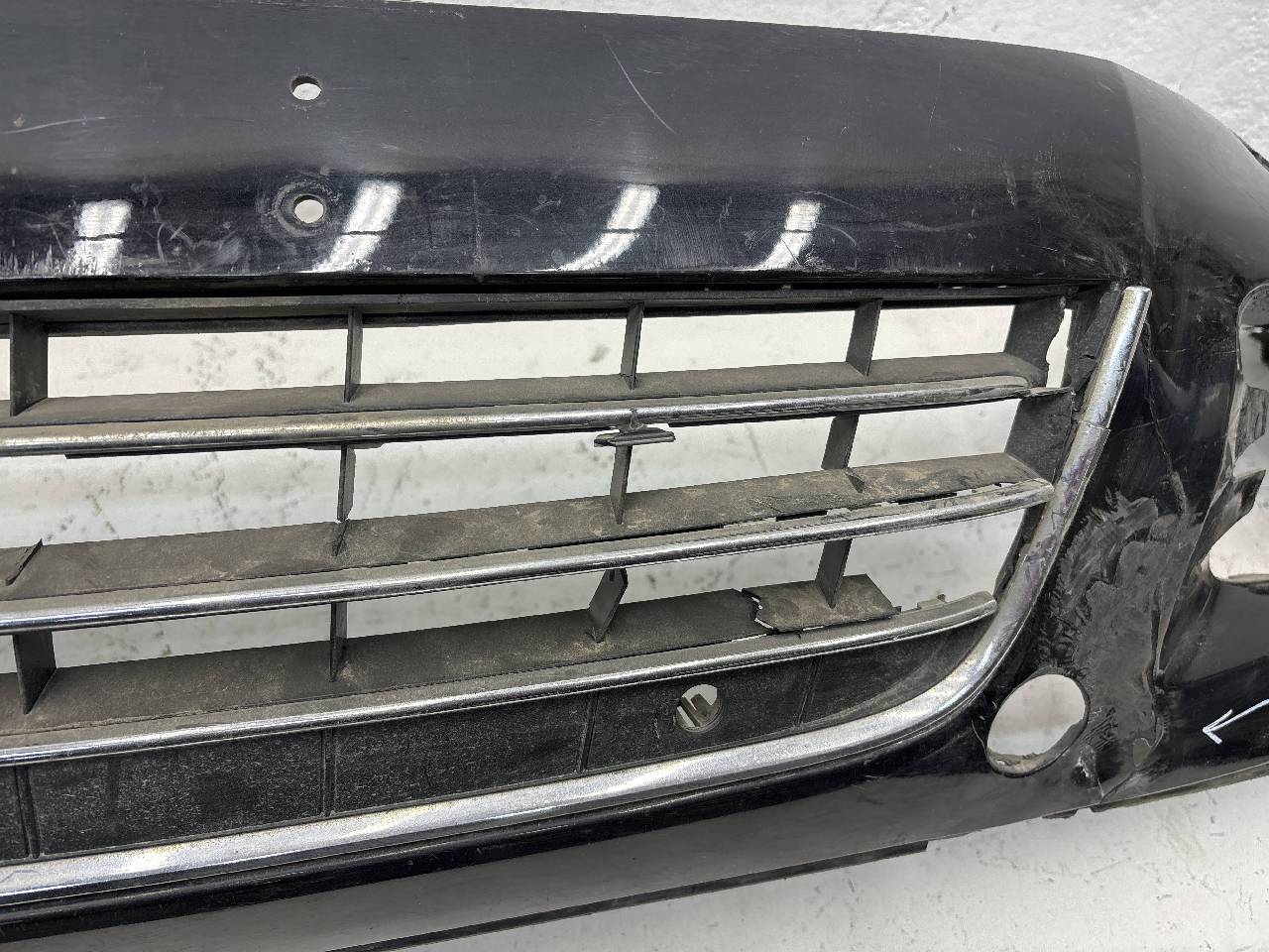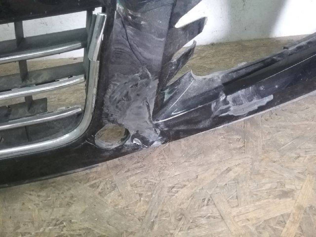 Бампер передний Volkswagen Touareg 2 под парктроники и омыватели. Чёрного цвета. Потертости, после ремонта, дефект креплений и пластика. Ремонтопригодно