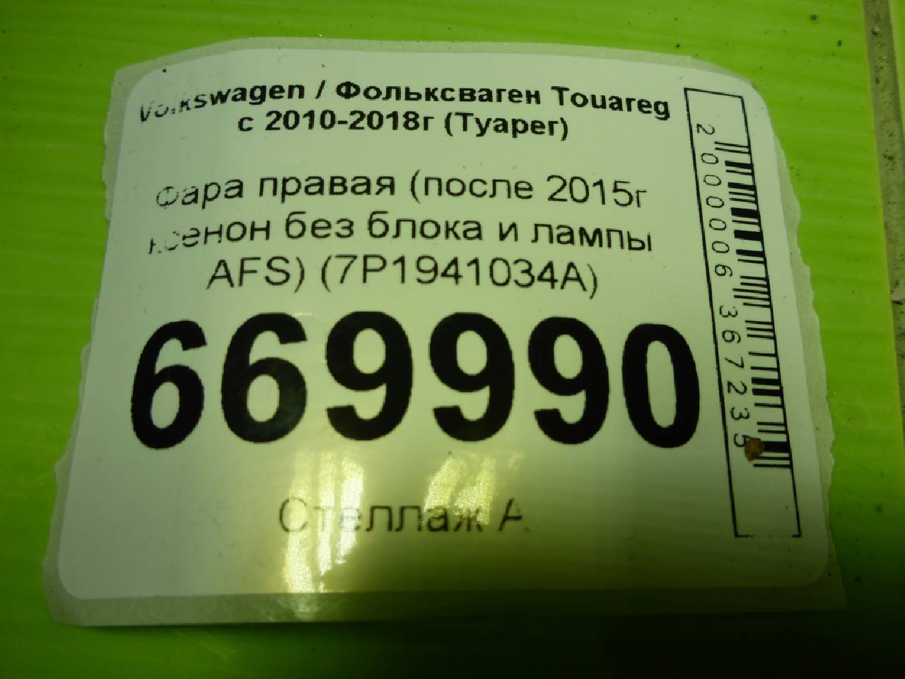 Деталь: Volkswagen Touareg NF - Фара правая (после 2015г ксенон без блока и лампы AFS) (7P1941034A)