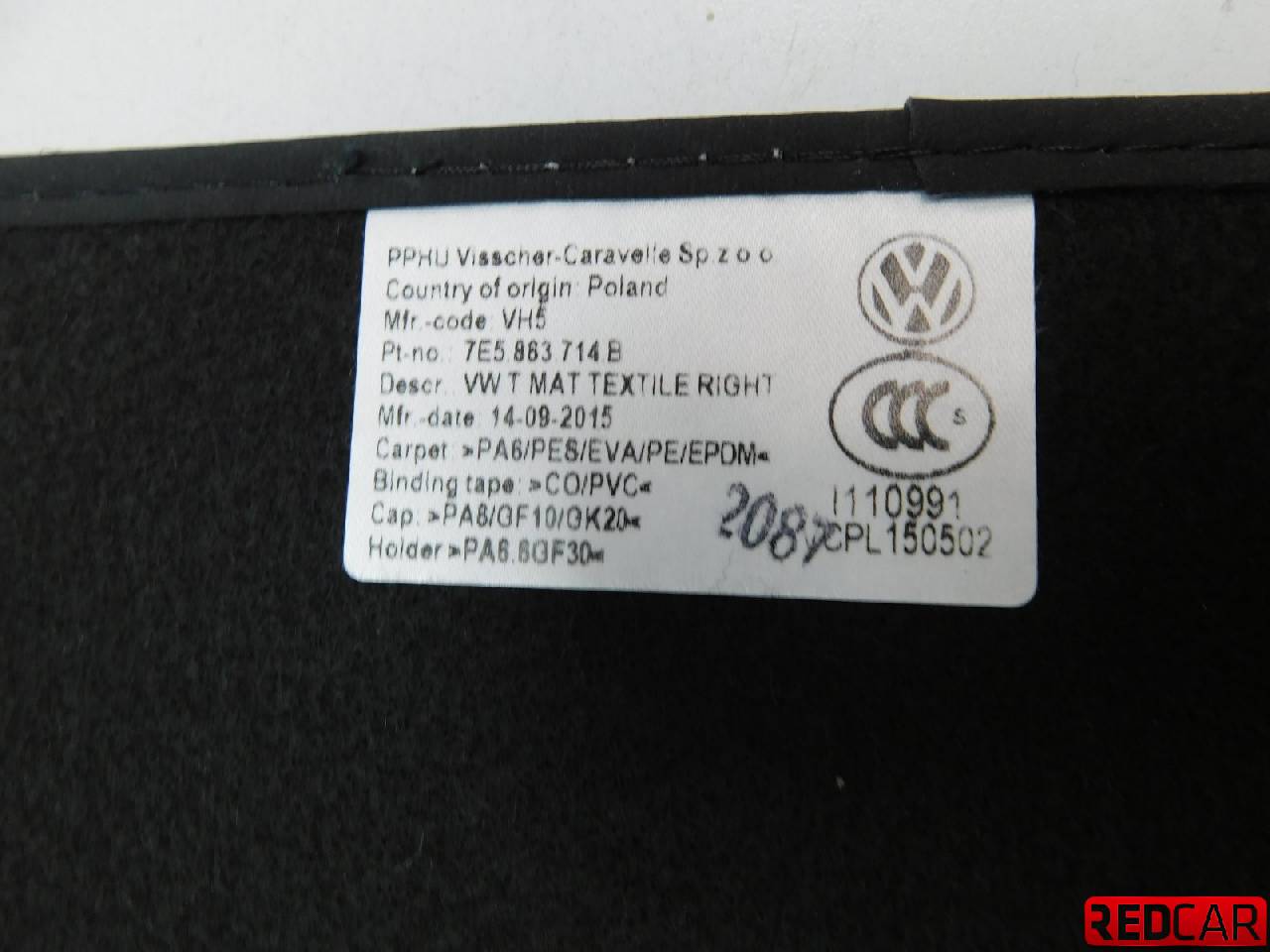 Деталь: Volkswagen Transporter T6 - Коврики салона
