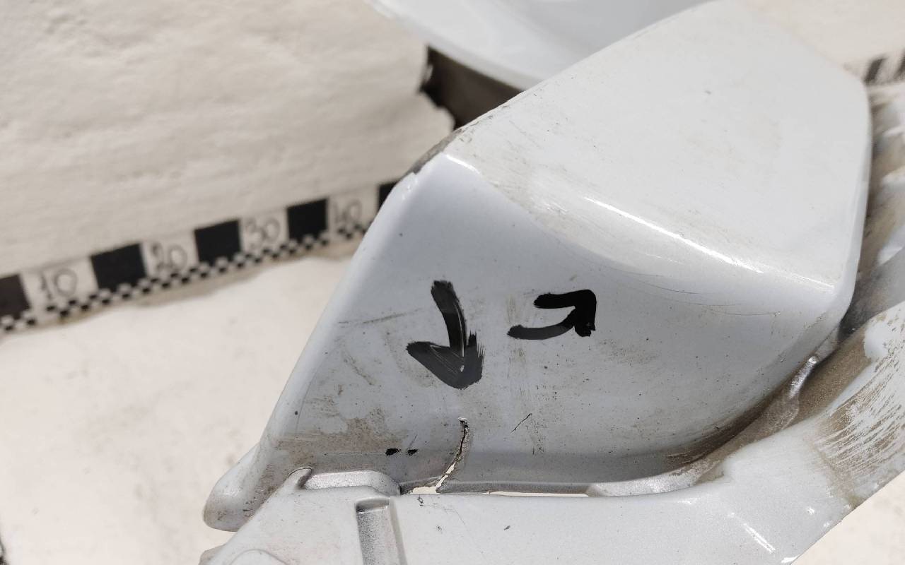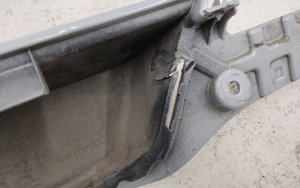 Состояние детали хорошее. Серого цвета. Потёртость, дефект пластика по торцу. Крепления целые. Потребуется незначительный ремонт