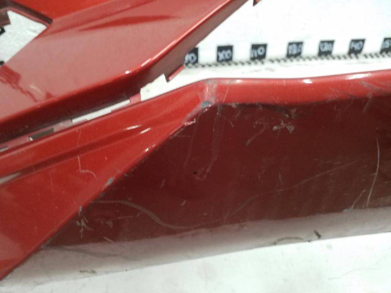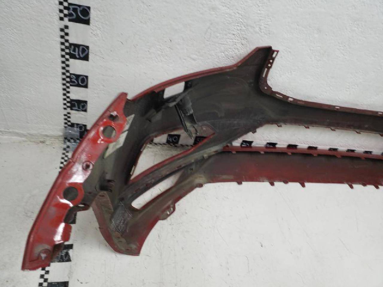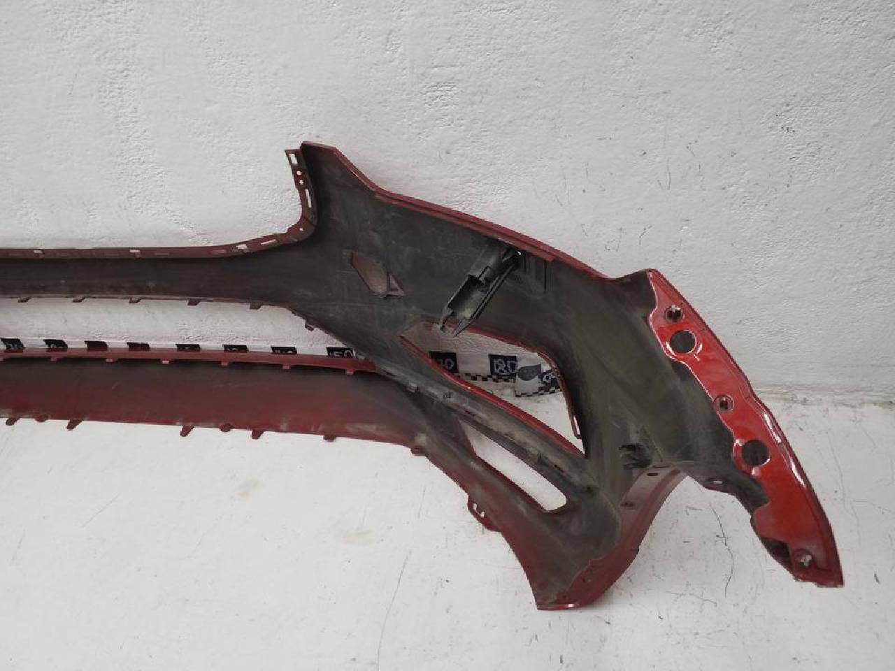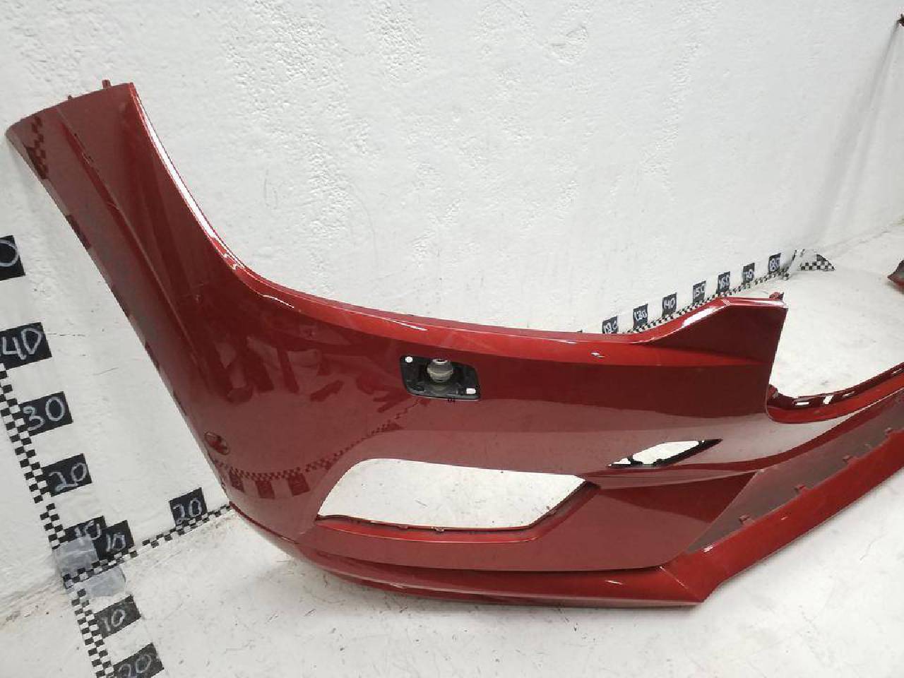 Состояние детали хорошее. Красного цвета под парктроники и омыватели фар,царапины. Крепления целые. Потребуется ремонт