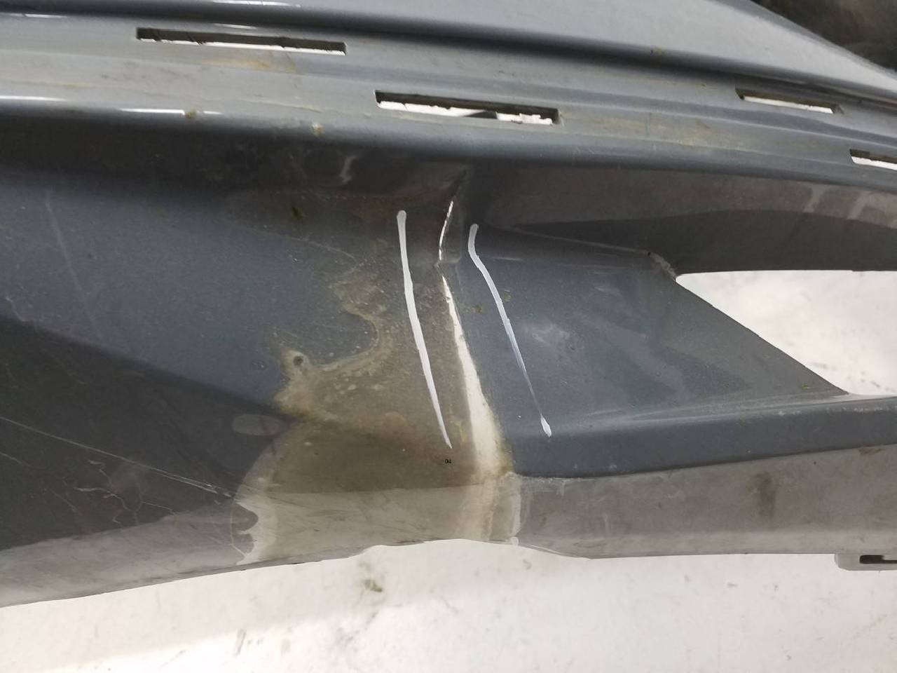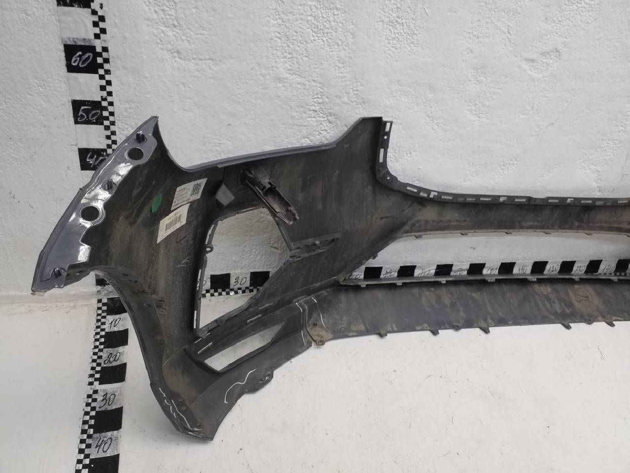 Состояние детали удовлетворительное. Серого цвета в пленке под парктроники и омыватели фар, дефект пластика на фото. Крепления целые. Под ремонт