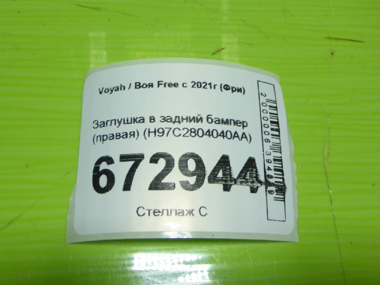 Деталь: Voyah Free - Заглушка в задний бампер (правая) (H97C2804040AA)