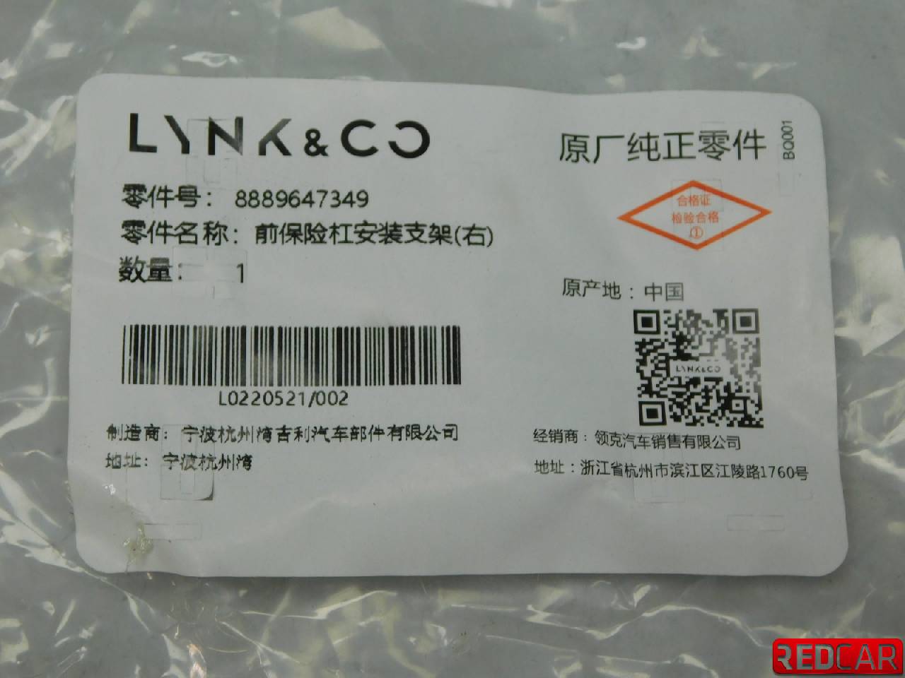 Главная > Zeekr > 001 > Zeekr 001 - Кронштейн переднего бампера - 8889647349 - 195323