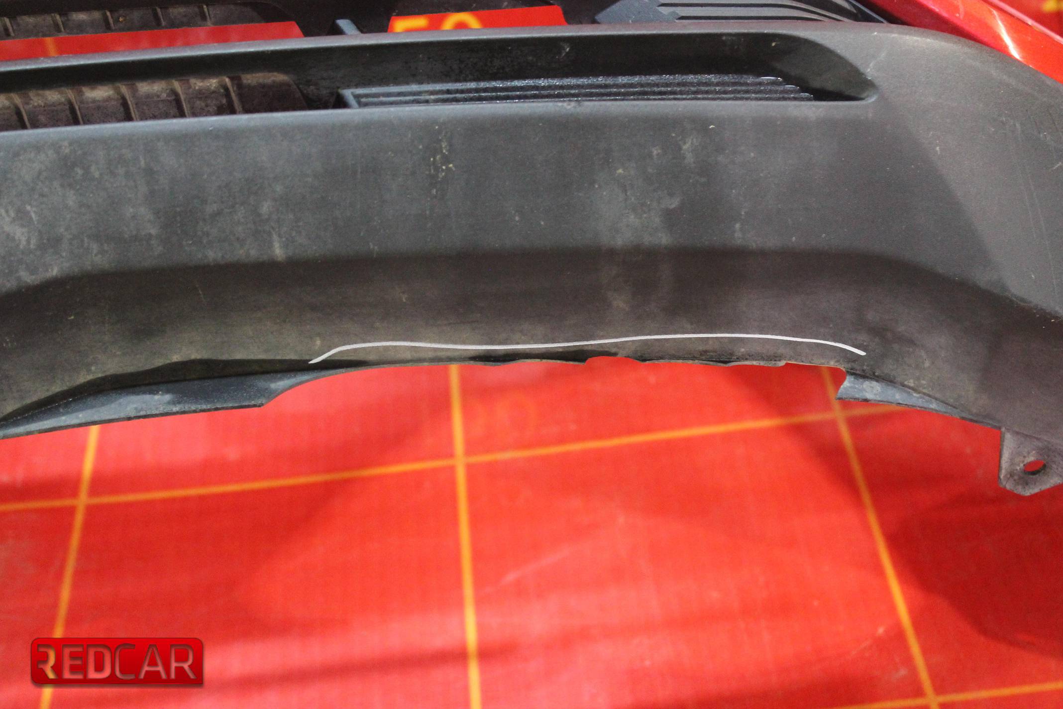 Повреждена кромка на спойлере бампера.