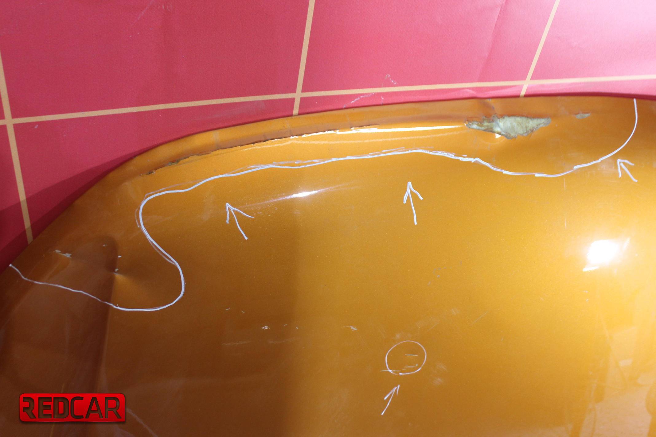 залом с обратной стороны капота. Подмяты уголки.