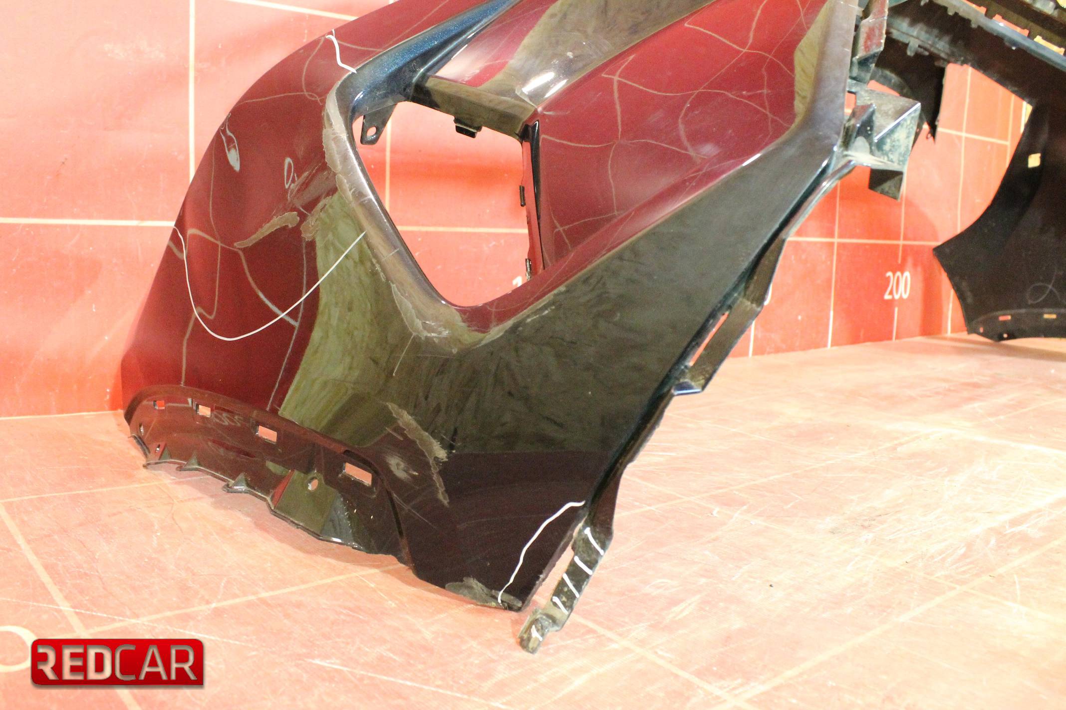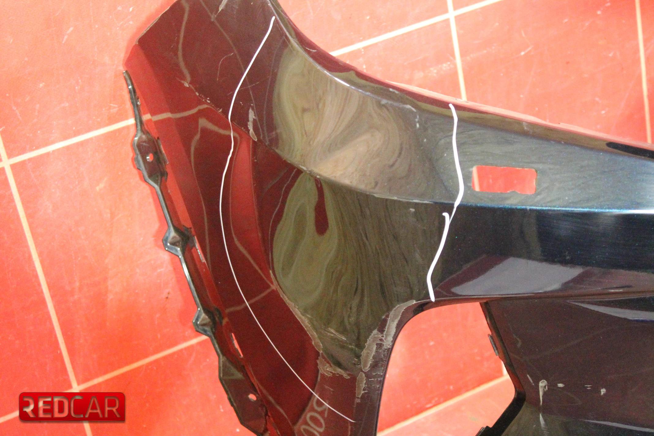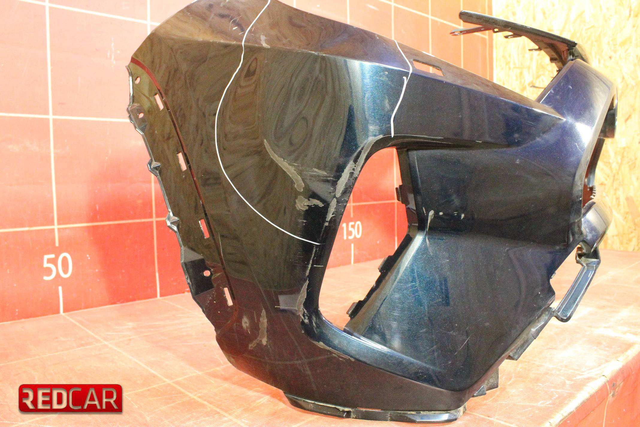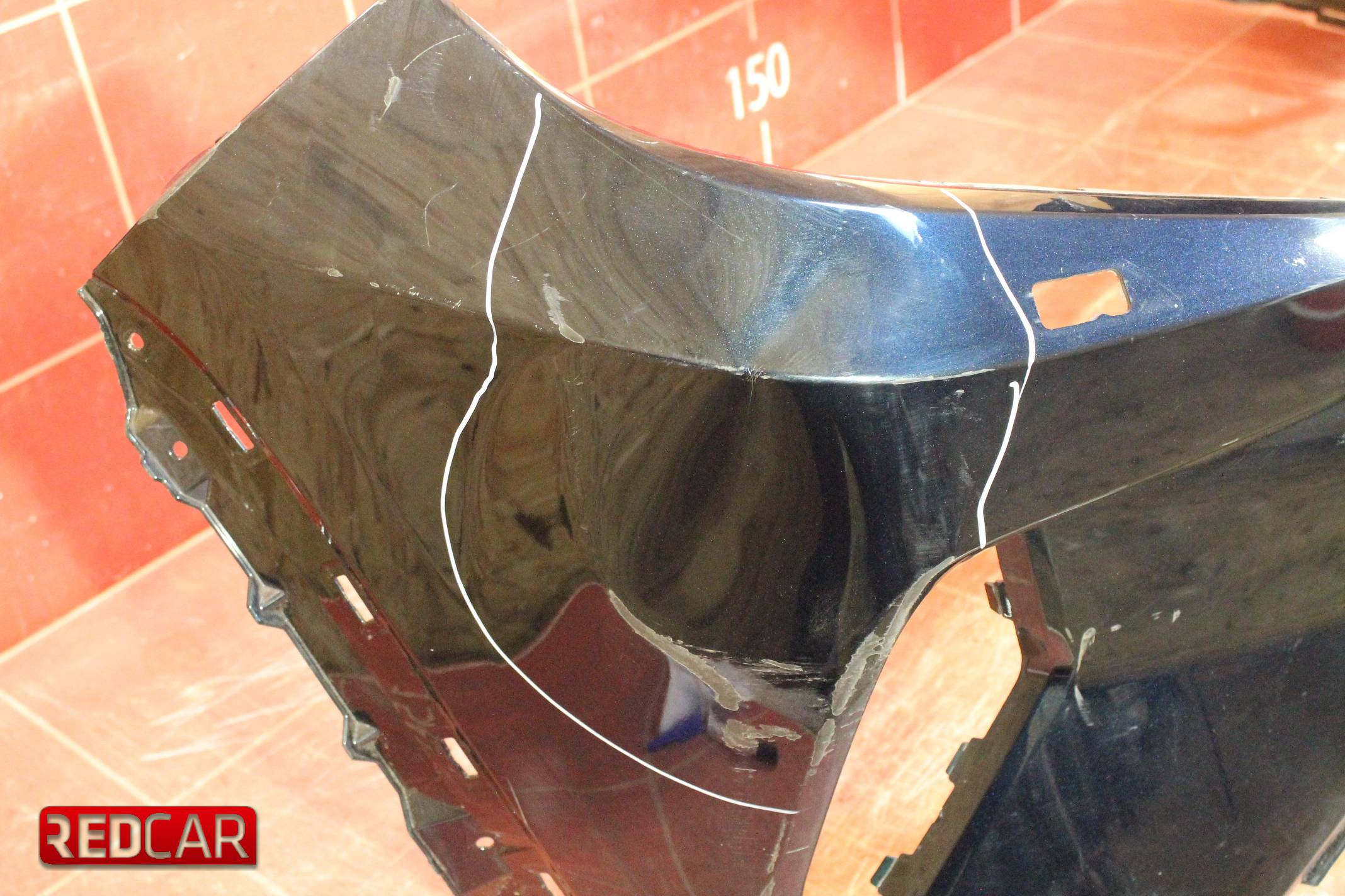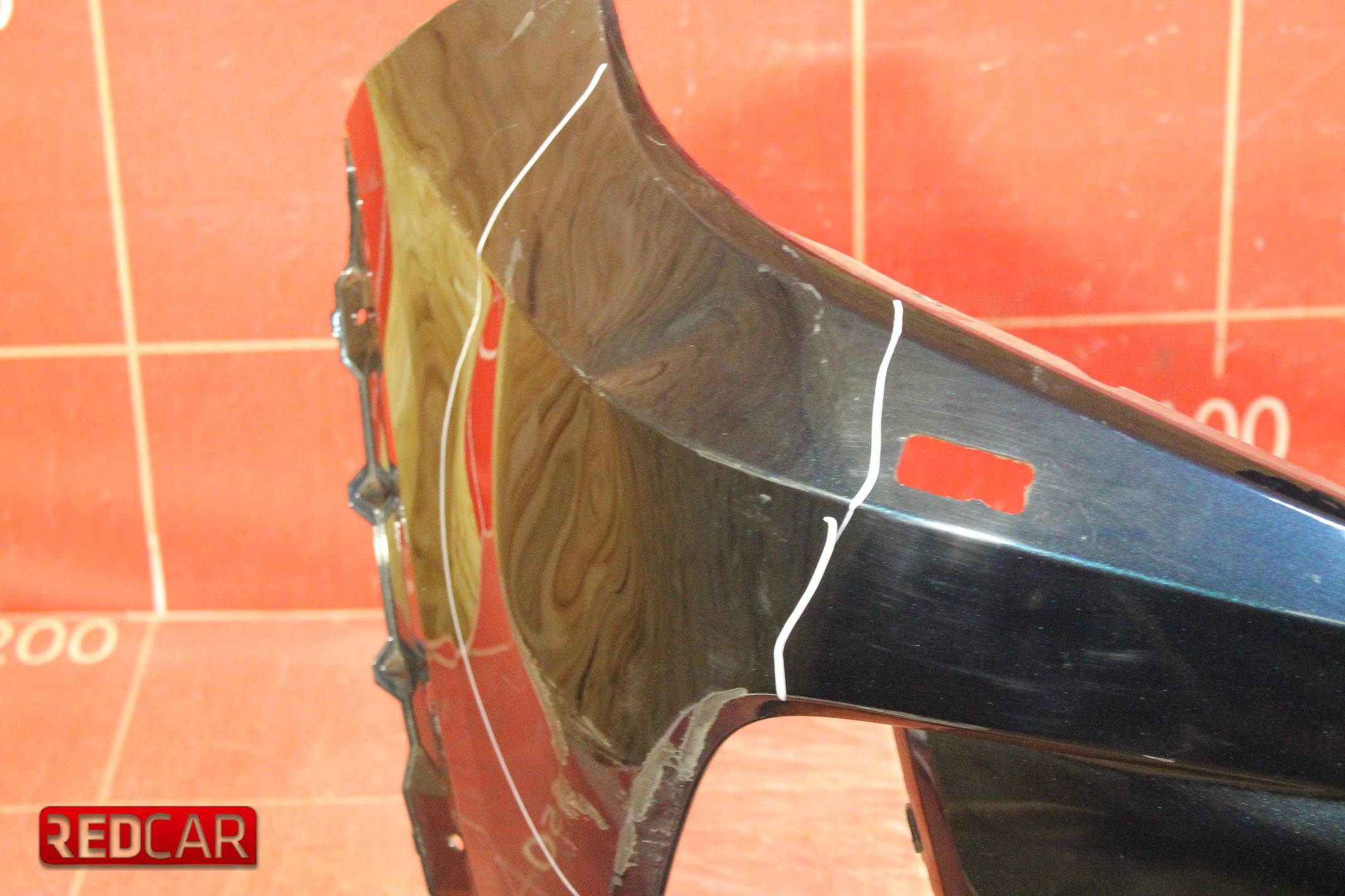 Состояние Б/У. Деформация в правой части, выделено маркером, сломано крепление в нижней части, выделено маркером